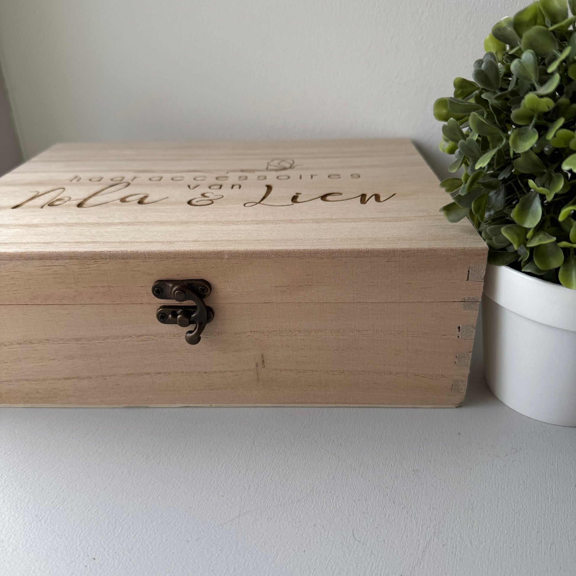 Altijd al je strikjes en/of clipjes kwijt? Met deze leuke bewaar kist houd je gemakkelijk alles bij elkaar. Personaliseer de kist met naam zodat je precies weet van wie de speldjes en/of clipjes zijn. Je kunt kiezen uit 4 verschillende ontwerpen maar natuurlijk zijn hier de mogelijkheden ook weer eindeloos. Zie je liever iets anders stuur gerust een berichtje.